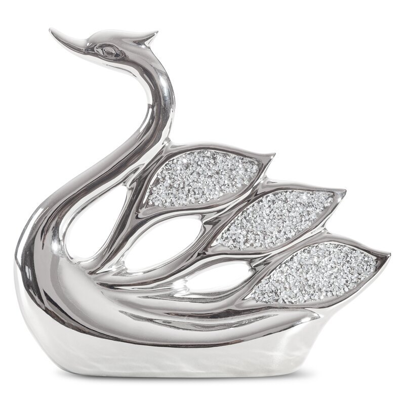 Ceramika dekoracyjna posiada nieocenione walory dekoracyjne. To dzięki elementom takim jak figurki dekoracyjne, wazony, patery, świeczniki wnętrze nabiera wyrazu i charakteru. Poprzez dodatki personalizujemy nasze prywatne wnętrza aby spełniały nasze oczekiwania zarówno użytkowe jak i wizualne. Srebrny łabędż ceramiczny będzie pięknym dodatkiem dekoracyjnym wnętrza urządzonego w stylu glamour.