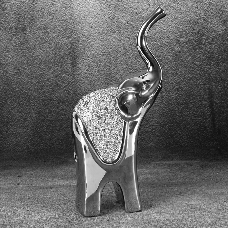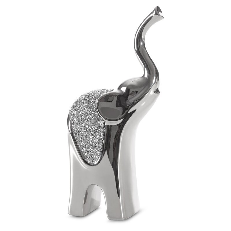 Ceramika dekoracyjna posiada nieocenione walory dekoracyjne. To dzięki elementom takim jak figurki dekoracyjne, wazony, patery, świeczniki wnętrze nabiera wyrazu i charakteru. Poprzez dodatki personalizujemy nasze prywatne wnętrza aby spełniały nasze oczekiwania zarówno użytkowe jak i wizualne. Srebrny słoń ceramiczny będzie pięknym dodatkiem dekoracyjnym wnętrza urządzonego w stylu glamour.