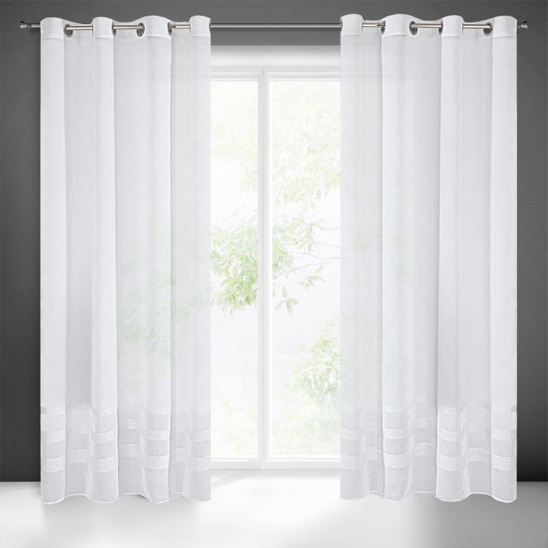 KLASYCZNA, ELEGANCKA FIRANA Z ETAMINY NA PRZELOTKACH. MATOWE TŁO PODKREŚLONE ZOSTAŁO POŁYSKUJĄCYMI LAMPASAMI. W KOLEKCJI EFIL DOSTĘPNYCH JEST KILKA KOLORÓW FIRAN - KTÓRE MOŻEMY DOWOLNIE ŁĄCZYĆ ZE SOBĄ TWORZĄC JEDNOLITĄ GATUNKOWO A ZRÓŻNICOWANĄ KOLORYSTYCZNIE KOMPOZCJĘ NA OKNIE.
