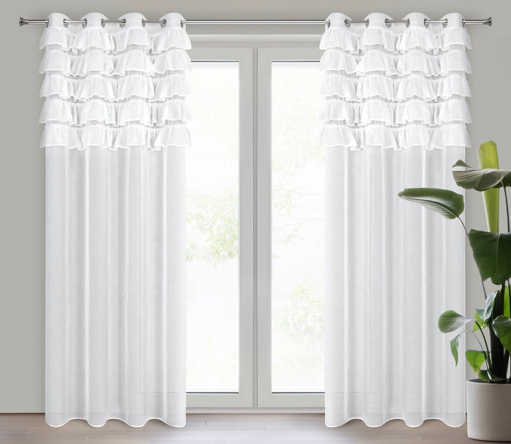 Odkryj gotową firanę AURA, która łączy w sobie elegancję i urok falban. Ta wyjątkowa firana, montowana na przelotkach, z falbankami od góry, wnosi do wnętrza styl i delikatność. Idealna do salonu, sypialni, jadalni oraz innych pomieszczeń, które wymagają odrobiny romantyzmu. Sprawdź naszą ofertę i dodaj swoim oknom wyjątkowego charakteru.
