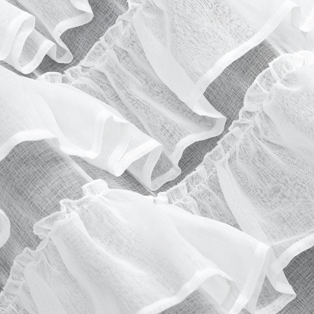 Gotowa firana AURA to połączenie subtelnej elegancji i nowoczesności. Jej falbanki od góry będą oryginalną i uroczą ozdobą na oknie. Matowa etamina z której wykonana jest firana dobrze się układa oraz nie sprawia probemów przy pasowaniu. Przelotki zapewniają szybki montaż i łatwość użytkowania. Firana AURA to doskonały wybór dla osób pragnących wprowadzić do swojego wnętrza romantyczny akcent.