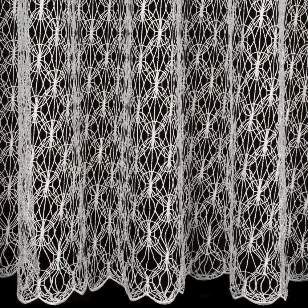 Od dołu firana wykończona jest subtelnymi łuczkami, które dodają jej lekkości i wdzięku. Dzięki ażurowemu splotowi firana pięknie przepuszcza światło, rozświetlając pomieszczenie i tworząc w nim przyjemny, ciepły klimat. To idealny wybór do wnętrz, które potrzebują jasności, elegancji i finezji.