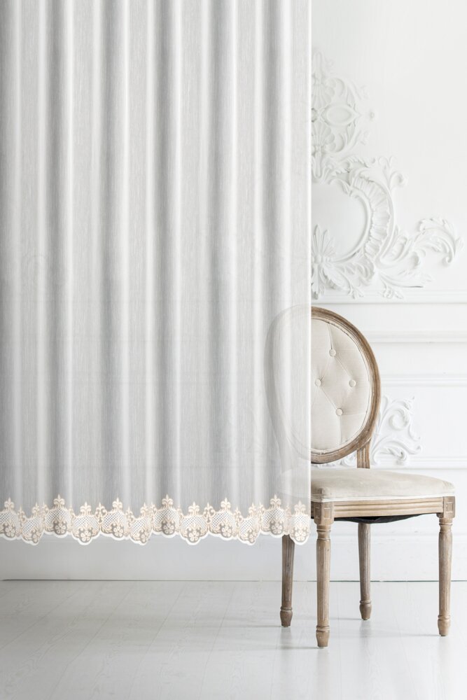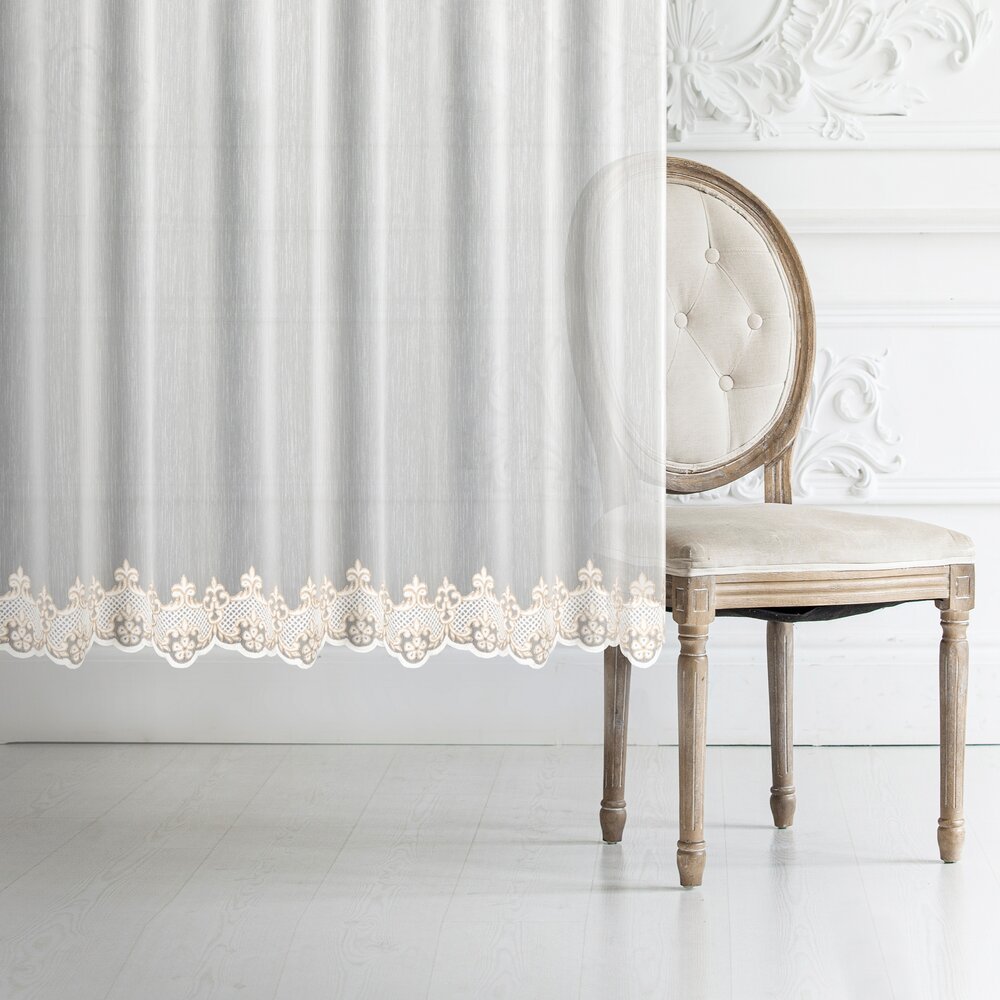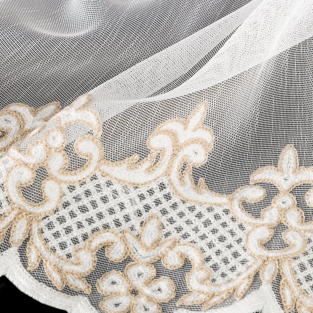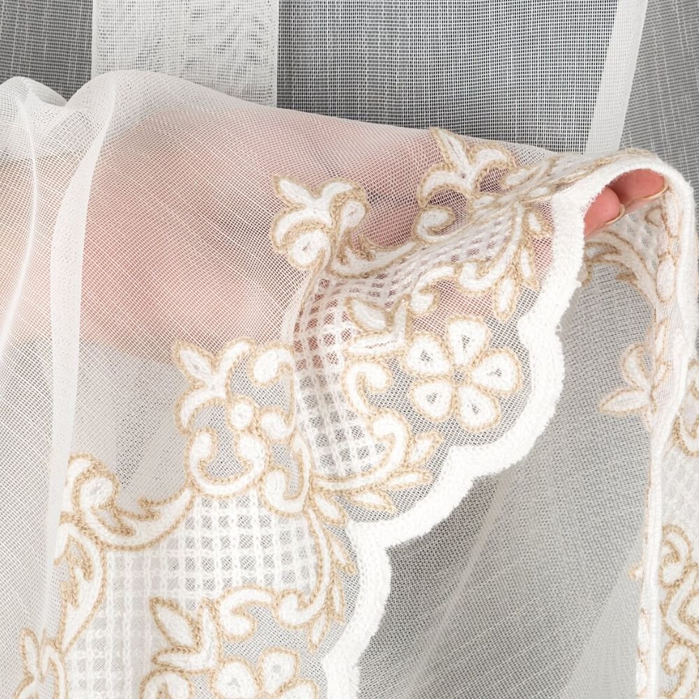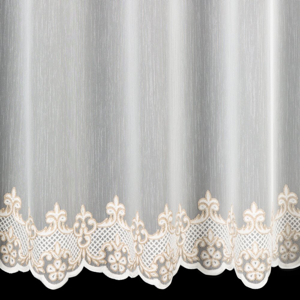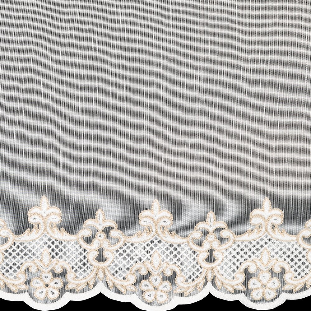 krótka firanka kremowakrótka firanka haftowana krem beżfiranka ze wzorem od dołu kremowafiranka wys. 160m kremowakrótka firanka do salonu kremowafiranka markizeta krem z gipiurą MOREdelikatna firana haftowana do kuchni kremelegancka firanka nad parapet krem beż