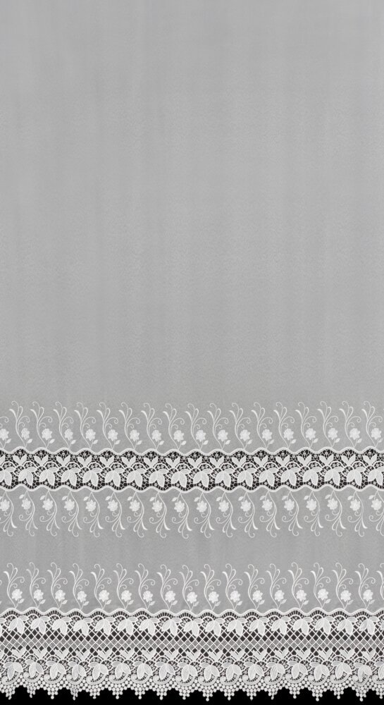 31,50 cm gipiura, 15,50 cm haft, 9 cm markizeta, 15 cm haft, 15,50 cm gipiura, 15 cm haft, pozostała część gładka markizeta.