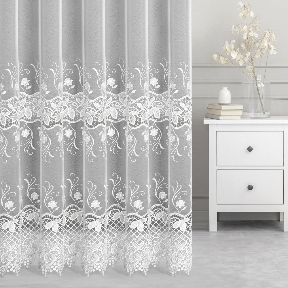 FIONA to elegancka, krótka firana z markizety w klasycznej bieli, wykończona dwoma szlakami subtelnej gipiury. Idealnie sprawdzi się w salonie, jadalni, kuchni, a także w pokoju biurowym. Dzięki wysokości 1,75 m świetnie pasuje na skrzydło okienne, a także do zestawienia z dłuższymi firanami na drzwi balkonowe.