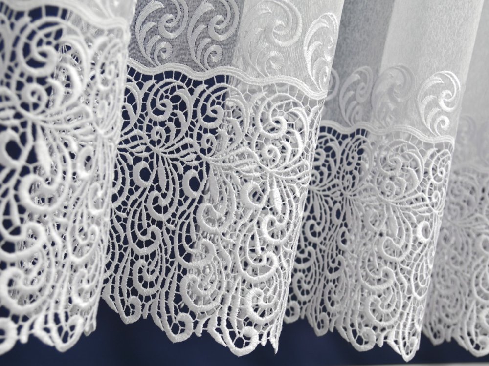 KOLORYSTYKA: | Biała markizeta z białą gipiurą oraz białym haftem | |