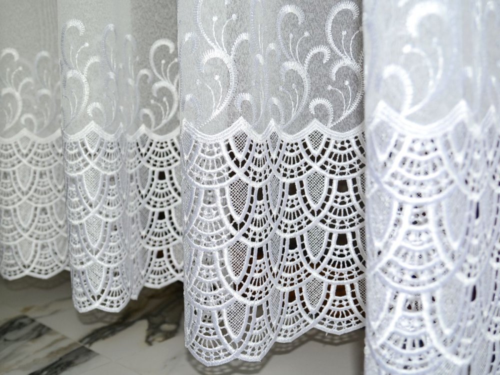 Zastosowana gipiura jest gruba, zbita i precyzyjnie tkana, dzięki czemu zachowuje stabilność wzoru nawet po wielokrotnym praniu. Markizeta nie ulega łatwo zagnieceniom i nie wymaga prasowania – wystarczy lekkie odwirowanie i rozwieszenie na mokro, aby materiał samoczynnie się wyprostował. To rozwiązanie szczególnie doceniane przy wysokich firanach balkonowych.