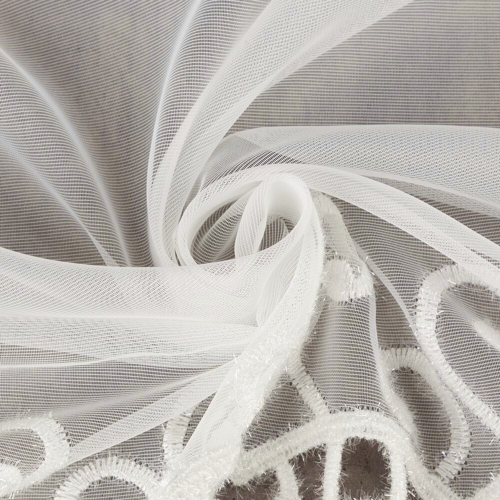 👉 Do kompletu dostępna jest także firana krótka SCILLA (wys. 1,75 m) firana krótsza ma węższą gipiurę – razem tworzą spójny i elegancki zestaw firan do okna oraz drzwi balkonowych.