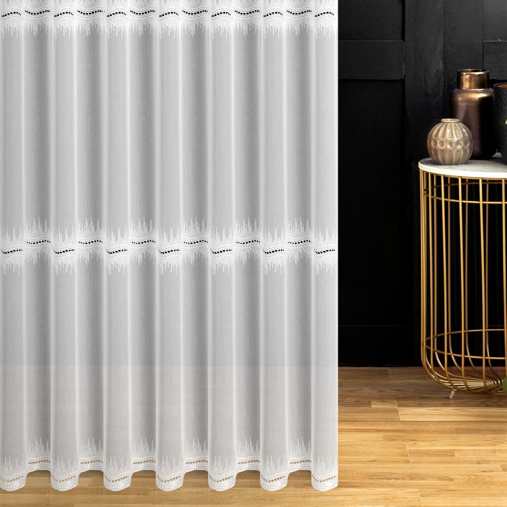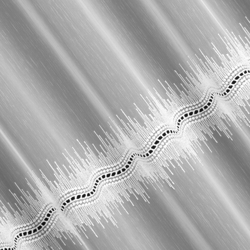 Firana FLEXA ma 3 szlaki haftu, które nadają jej elegancki rytm i uporządkowany wygląd, bez efektu ciężkiej dekoracji.