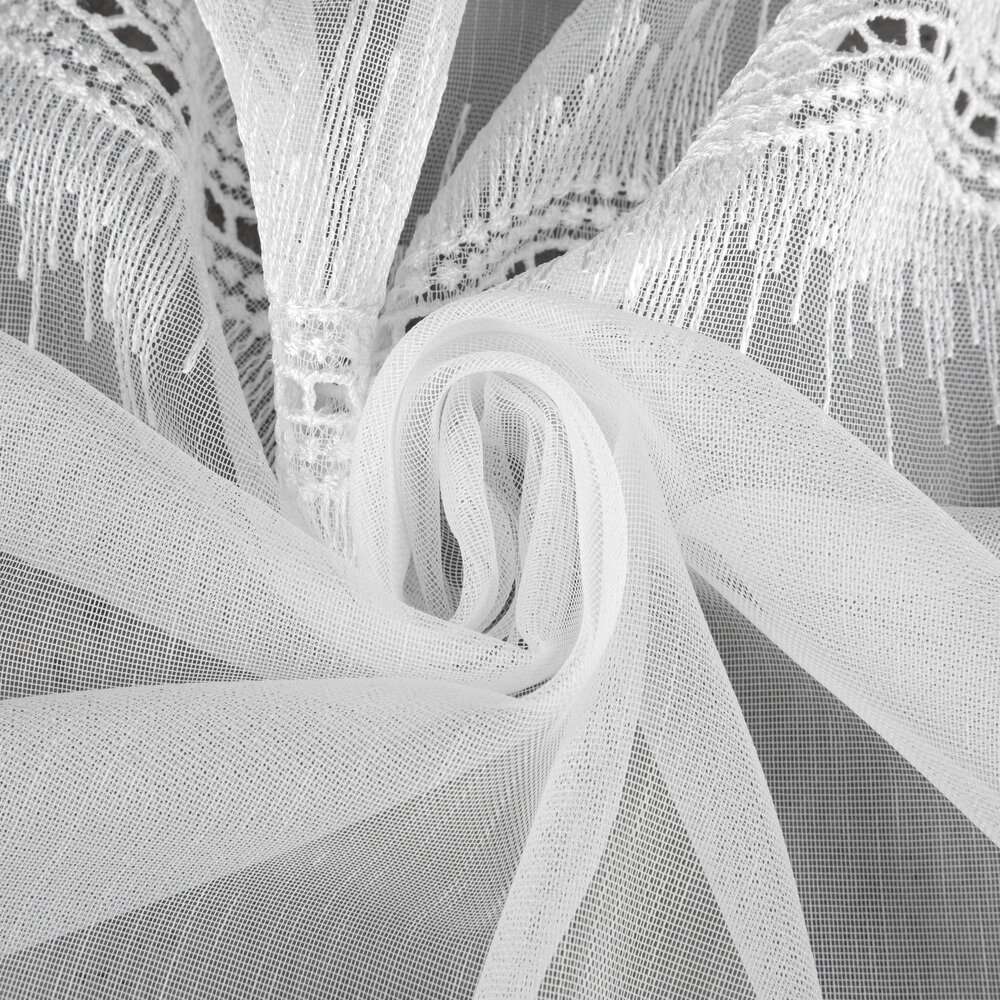 Jeśli zastosujesz FLEXĘ jako długą firanę do okna, to ostatni (górny) szlak haftu będzie widoczny nad parapetem, ponieważ typowo parapet znajduje się na wysokości ok. 90 cm. Dzięki temu dekoracyjna część wzoru nie „chowa się” za parapetem – haft pracuje wizualnie dokładnie tam, gdzie najczęściej chcesz go widzieć.
