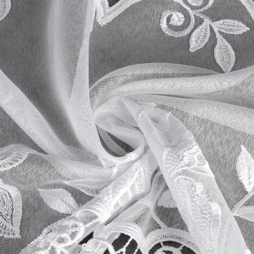 KOKARDKI w wersji 2,95 m to elegancka, długa firana z markizety, idealna na drzwi balkonowe i wysokie okna w salonie. Subtelna gipiura z motywem kokardek nadaje wnętrzu romantyczny, delikatny i pełen klasy charakter.