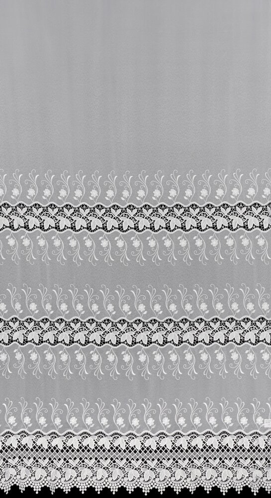 31,50 cm gipiura, 15,50 cm haft, 9 cm markizeta, 15 cm haft, 15,50 cm gipiura, 15 cm haft, 9 cm markizeta, 15 cm haft, 15,50 cm gipiura, 15 cm haft, pozostała część gładka markizeta.
