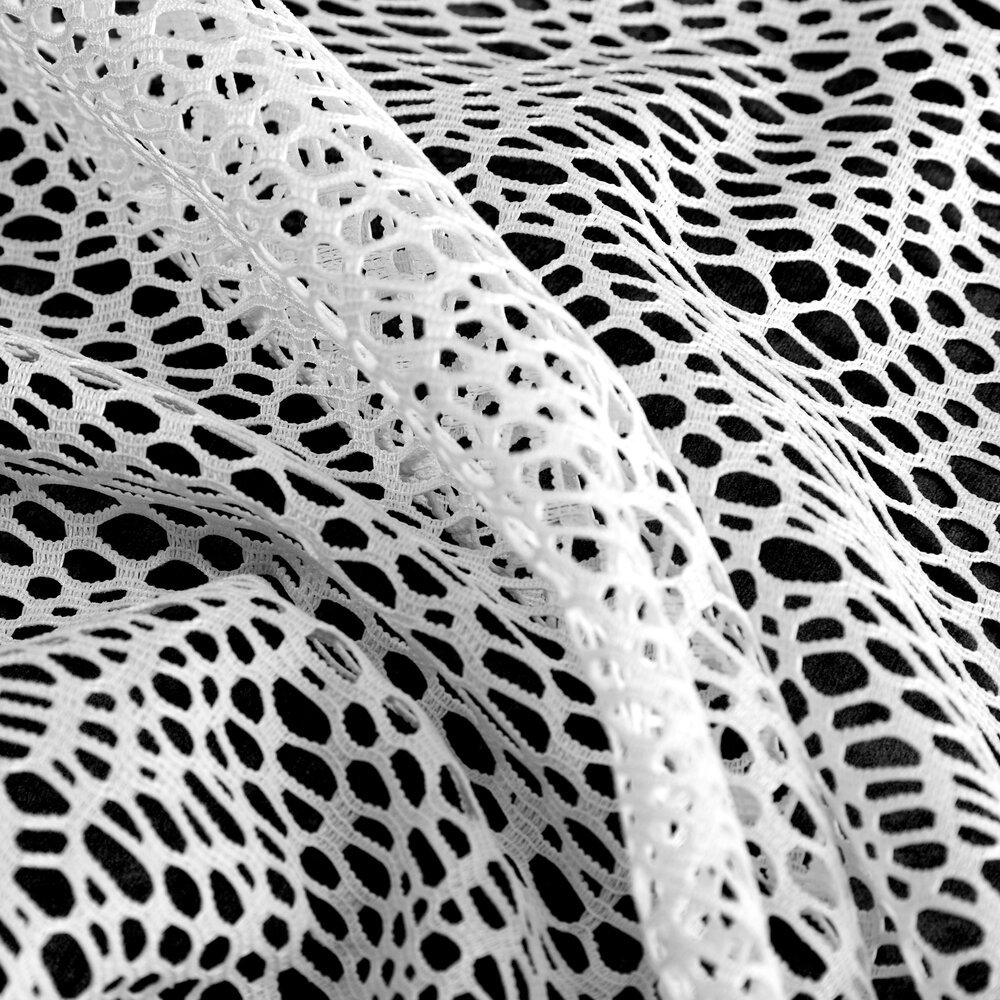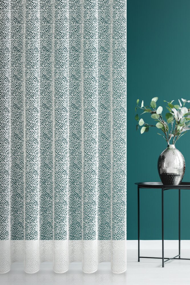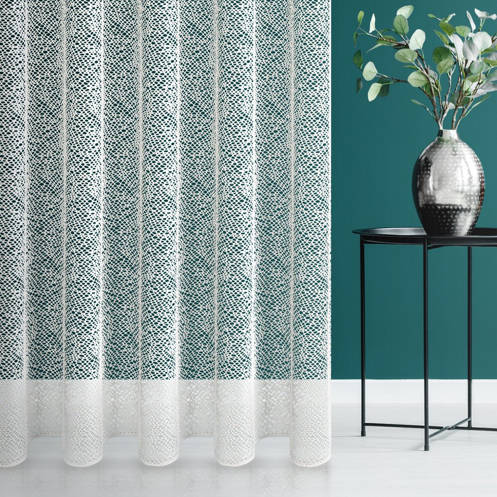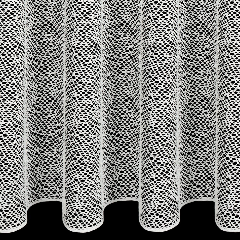 Ta wysokiej jakości firana z siatki żakardowej o wysokości 2,80 m zachwyca subtelną fakturą o nieregularnych oczkach przypominających plecionkę, dzięki czemu doskonale wpisuje się w aktualne trendy wnętrzarskie.