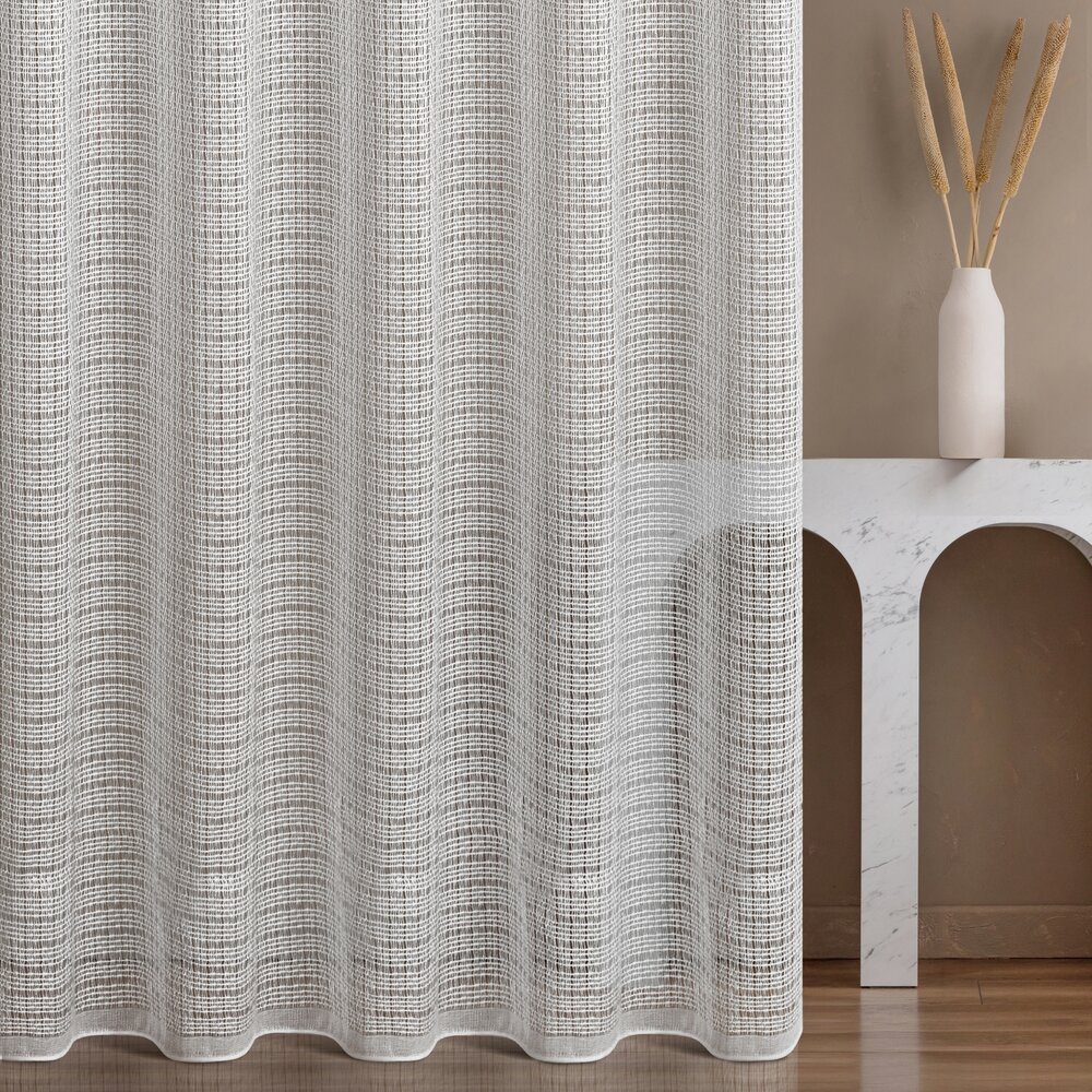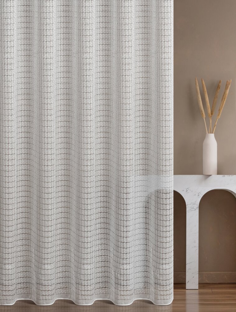 Firana ELIRA pięknie prezentuje się solo lub w połączeniu z zasłonami w odcieniach bieli, szarości lub srebra. Jej neutralny, a zarazem luksusowy charakter sprawia, że wkomponuje się zarówno w nowoczesne, jak i klasyczne wnętrza.