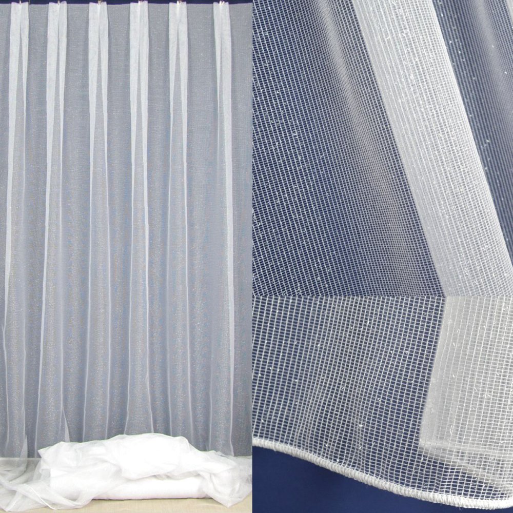 Nowoczesna długa firana siatka - Nabłyszczane firany z siatki bez prasowania - "LUCY" biel - 295