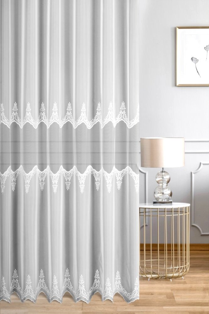 Firana z woalu ELEONOR doskonale komponuje się z klasycznymi, glamour i nowoczesnymi wnętrzami, dodając im elegancji i lekkości. Turecka tkanina zachwyca jakością i precyzją wykonania, a subtelne ząbkowane wykończenie dołu stanowi efektowne zwieńczenie całej kompozycji. To model dla wymagających, który podkreśli charakter każdego salonu lub jadalni.