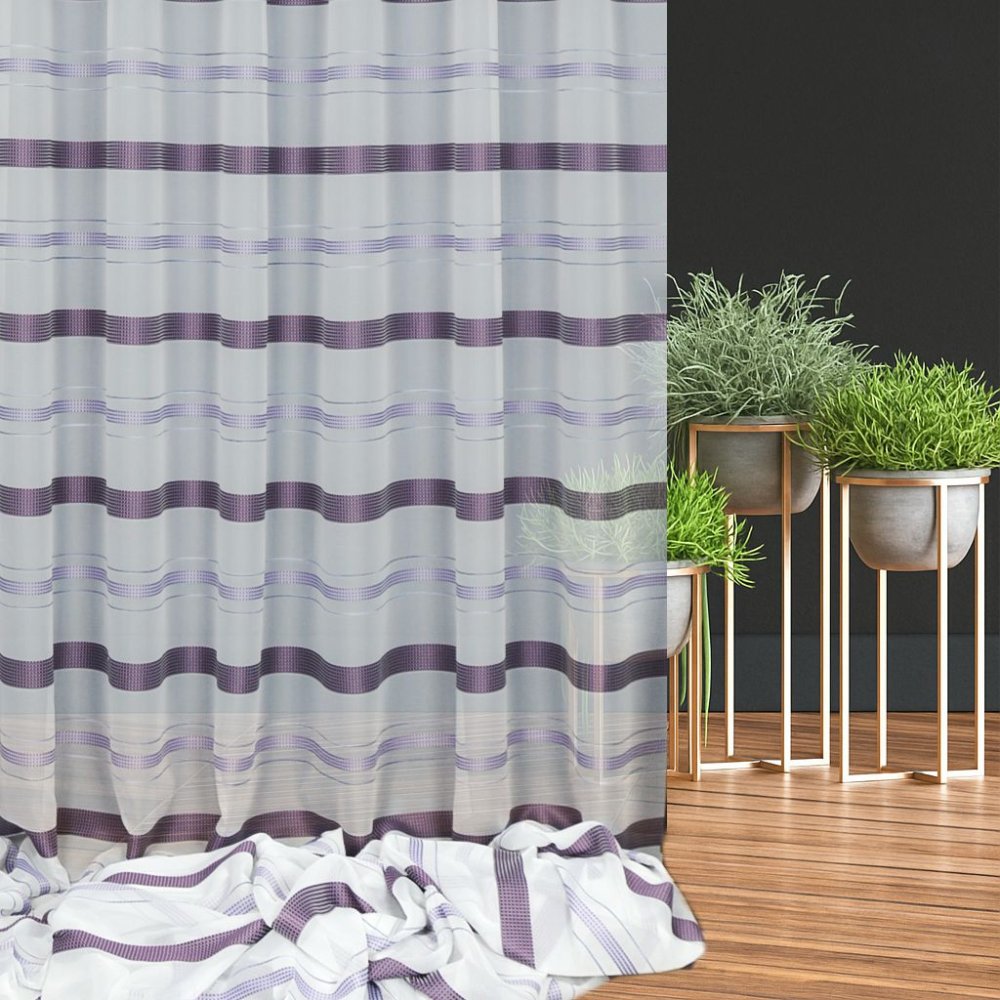 Firana ANAKIN biel–fiolet to propozycja dla osób, które cenią nowoczesny styl, świeżość oraz subtelną grę kolorów. Tkanina z delikatnego, lekkiego woalu o strukturze półprzezroczystej została ozdobiona tkanymi pasami w odcieniach bieli i fioletu, które dodają wnętrzu energii, harmonii i nowoczesnego charakteru.