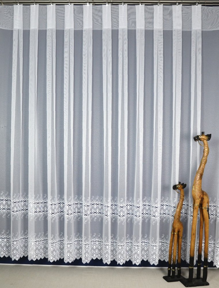 Produkt wykonany jest z wysokiej jakości markizety z gipiurą – materiału cenionego za trwałość, odporność na zagniecenia oraz bardzo dobrą przepuszczalność światła. Tkanina nie wymaga prasowania, co znacząco ułatwia codzienną pielęgnację i użytkowanie. Markizeta delikatnie rozprasza światło dzienne, pozostawiając wnętrze jasne i przytulne, a jednocześnie zapewniając elegancką oprawę okna. Klasyczna biel sprawia, że model łatwo dopasować do większości stylów wnętrz.