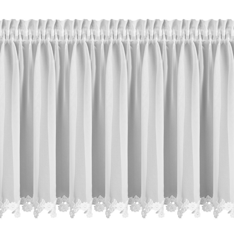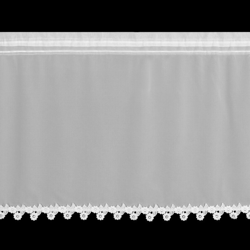 Zazdrostka gotowa zdobiona obszywką szerokość: 150 cm, długość: 60 cm, kolor: biały, Gramatura: 60 GSM, Skład: 100% poliester