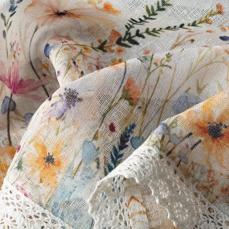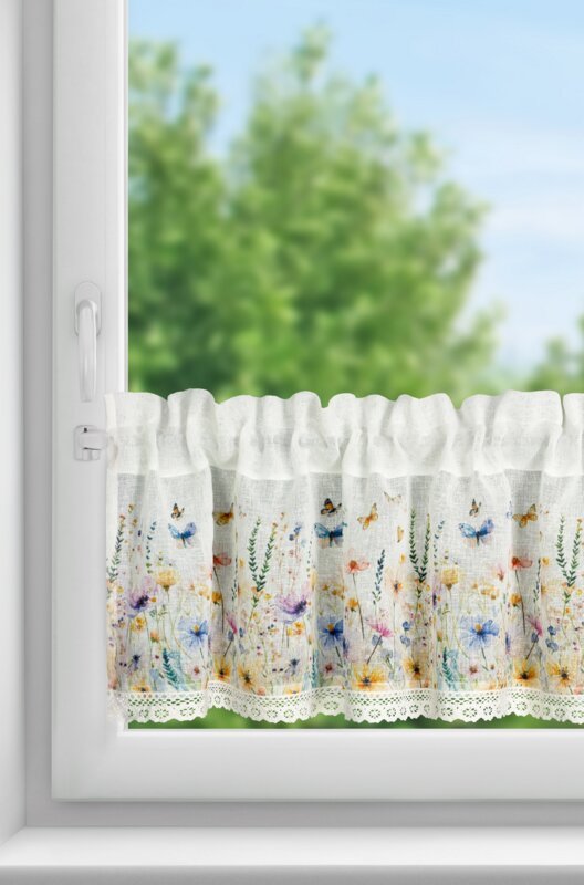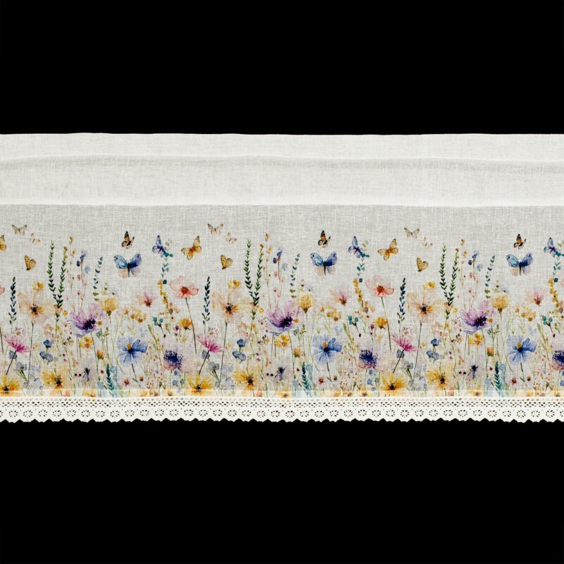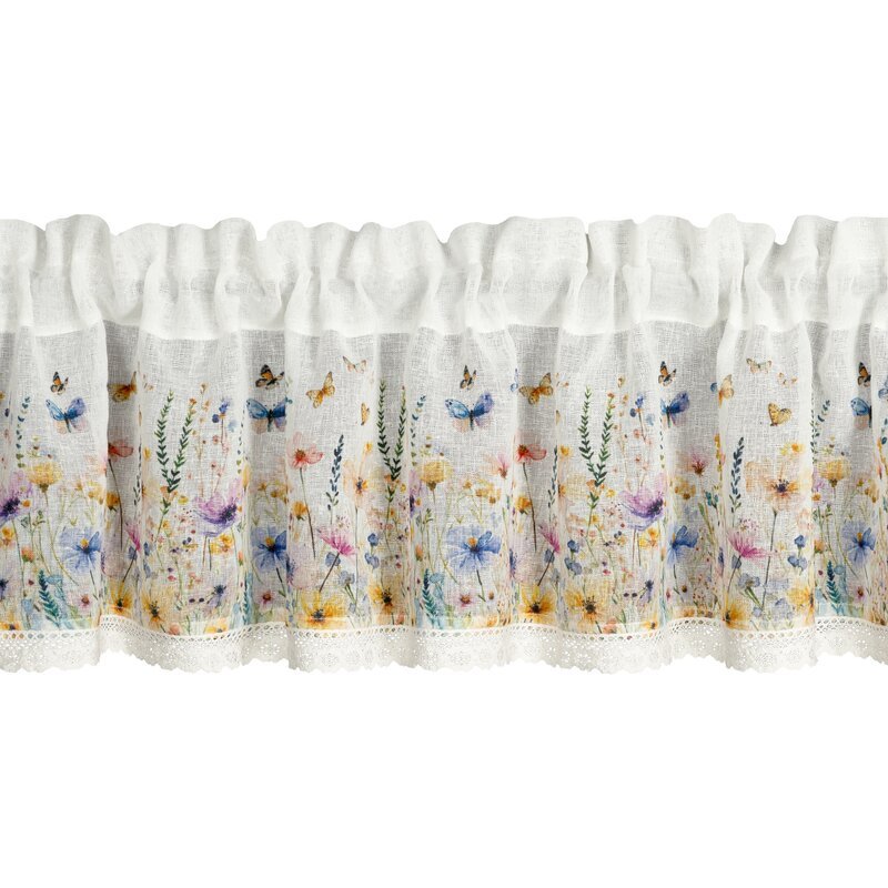 Zazdrostka z nadrukiem zdobiona koronką szerokość: 150 cm, długość: 30 cm, kolor: biały, Gramatura: 110 GSM, Skład: 100% poliester