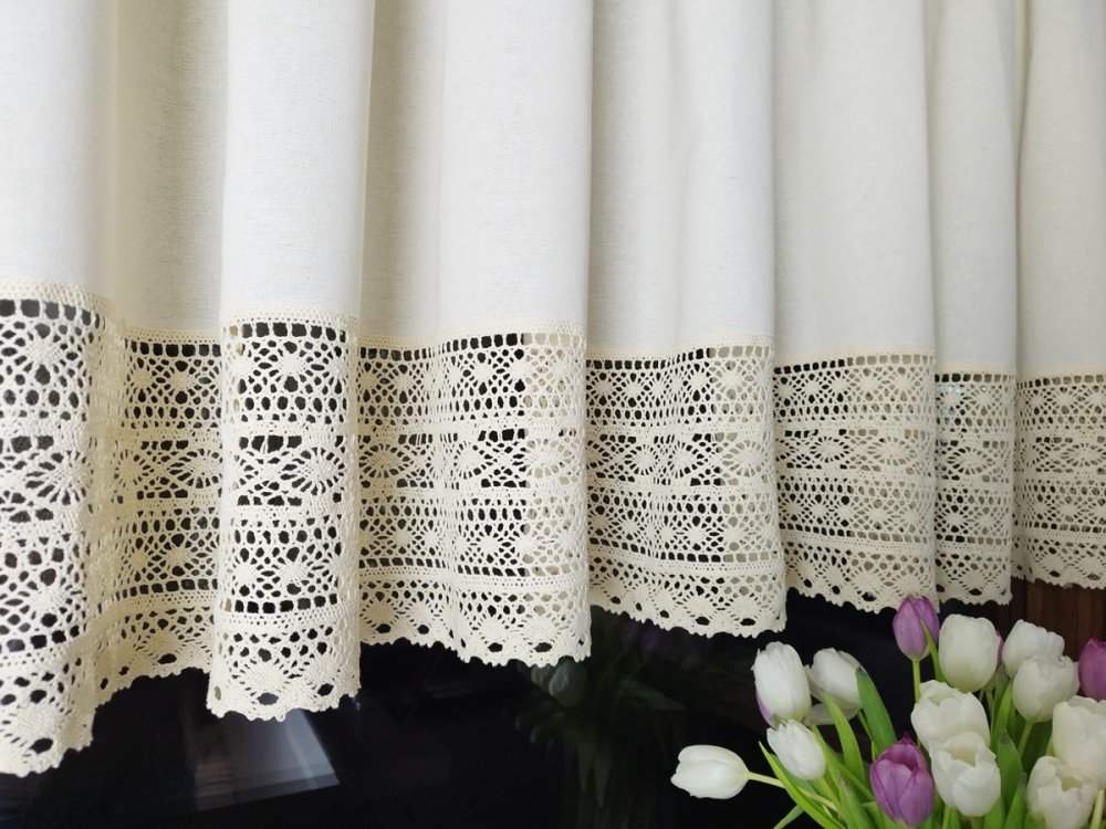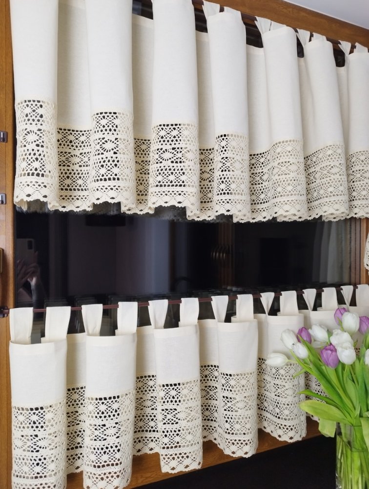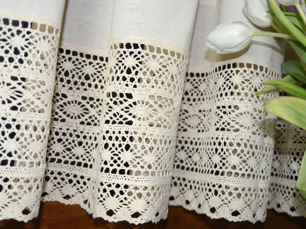 Zazdrostki z koronką KSENIA to wyjątkowa dekoracja okienna, która łączy w sobie rustykalny urok i naturalną elegancję. Wykonane z wysokiej jakości bawełny w kolorze naturalnego beżu, zdobione szeroką, misternie plecioną koronką o wysokości 22,5 cm, doskonale pasują do wnętrz w stylu wiejskim, prowansalskim oraz retro. Świetnie sprawdzą się nie tylko w kuchni, ale również w jadalni, salonie, a nawet w klimatycznych karczmach i restauracjach.