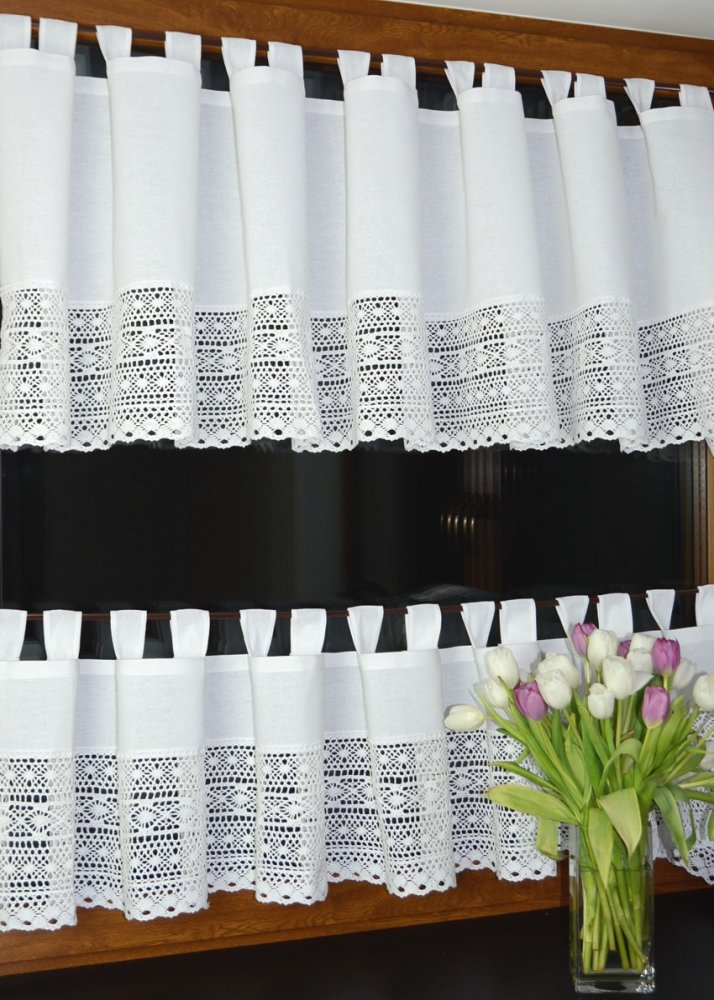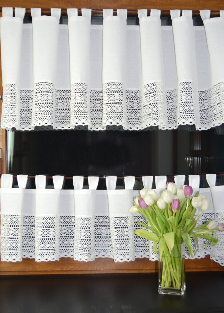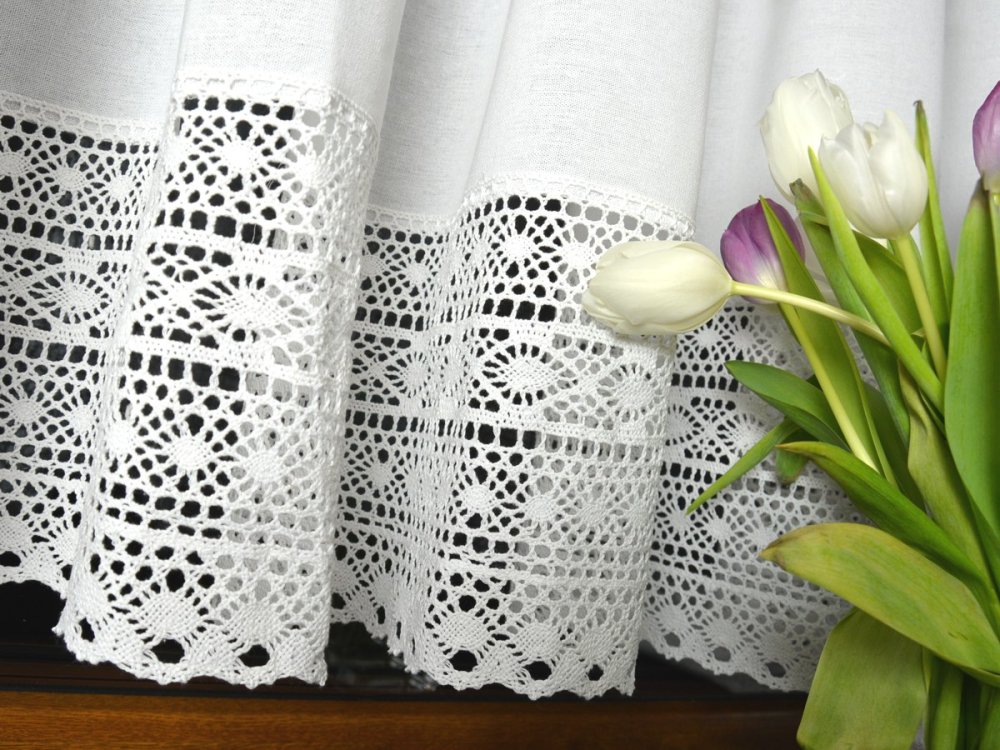Zazdrostki z koronką KSENIA to wyjątkowa dekoracja okienna, która łączy w sobie rustykalny urok i naturalną elegancję. Wykonane z wysokiej jakości bawełny, zdobione szeroką, misternie plecioną koronką o wysokości 22,5 cm, doskonale pasują do wnętrz w stylu wiejskim, prowansalskim oraz retro. Świetnie sprawdzą się nie tylko w kuchni, ale również w jadalni, salonie, a nawet w klimatycznych karczmach i restauracjach.