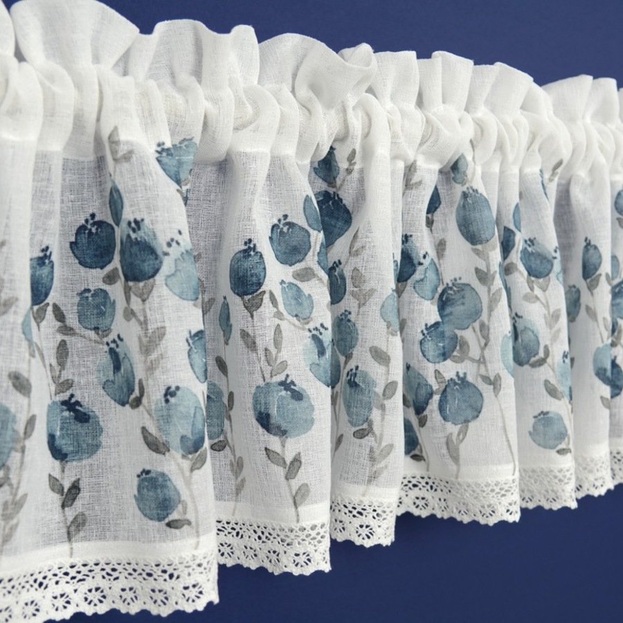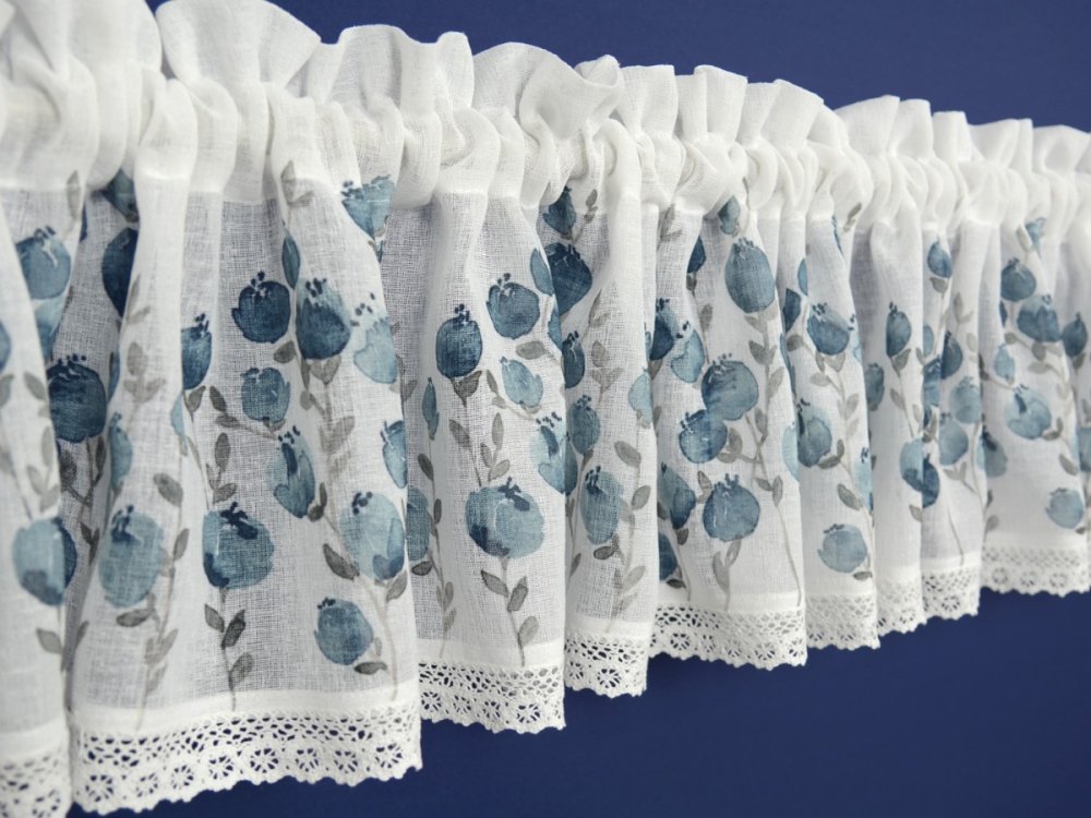 Zazdrostki kuchenne „Pola” to wyjątkowa dekoracja okienna inspirowana prowansalskim i rustykalnym stylem. Ich uroczy wzór niebieskich kwiatów jagody doskonale komponuje się zarówno w klasycznych, jak i stylizowanych wnętrzach. To idealny wybór nie tylko do kuchni domowej, ale także do restauracji, karczm i lokali gastronomicznych, gdzie podkreślą przytulny, sielski klimat.