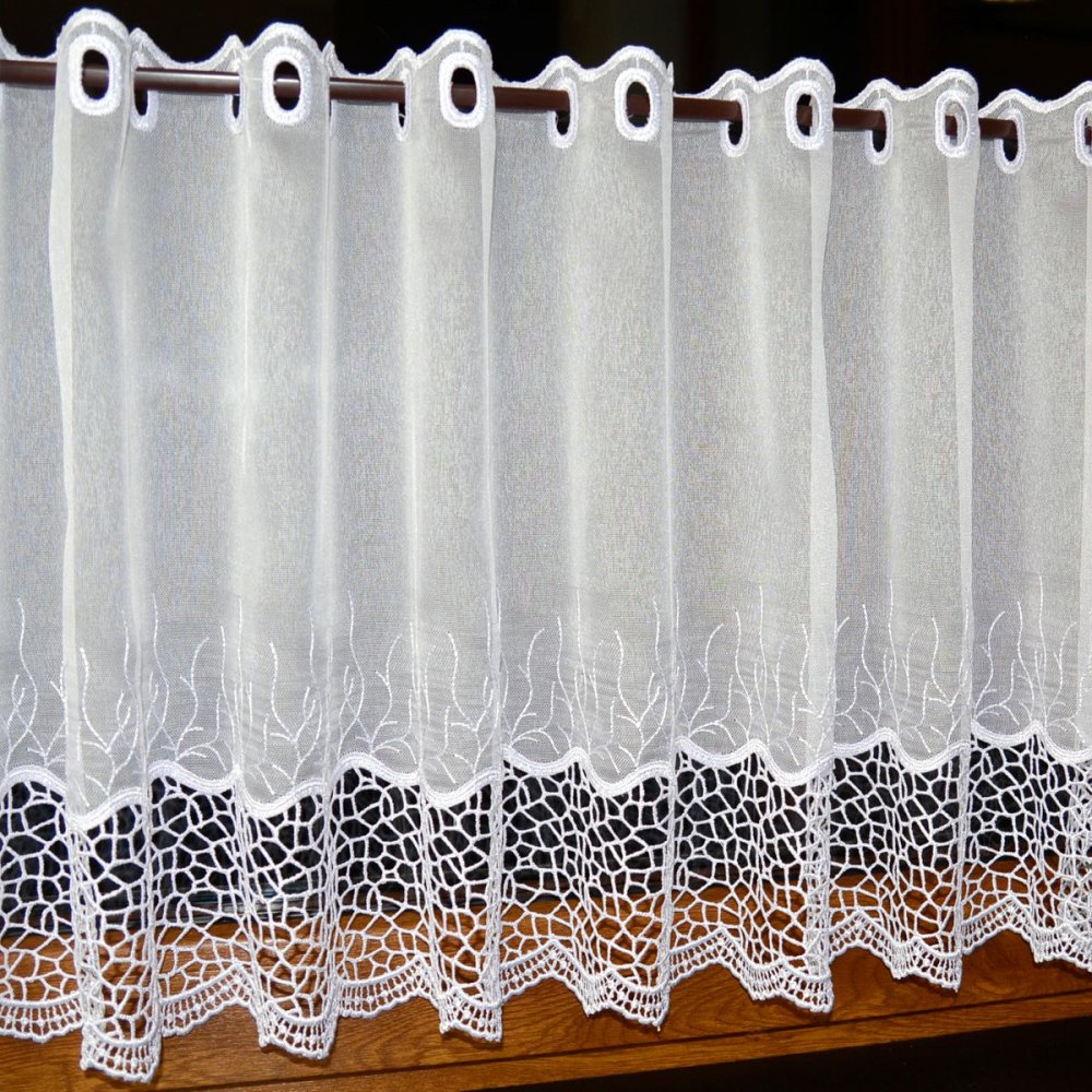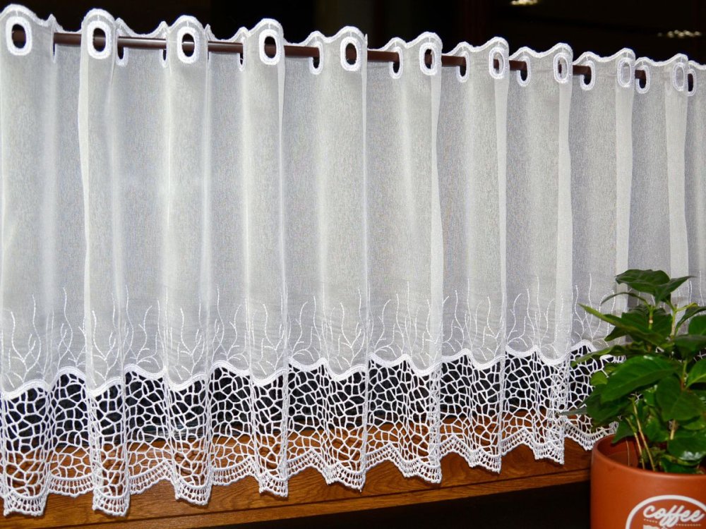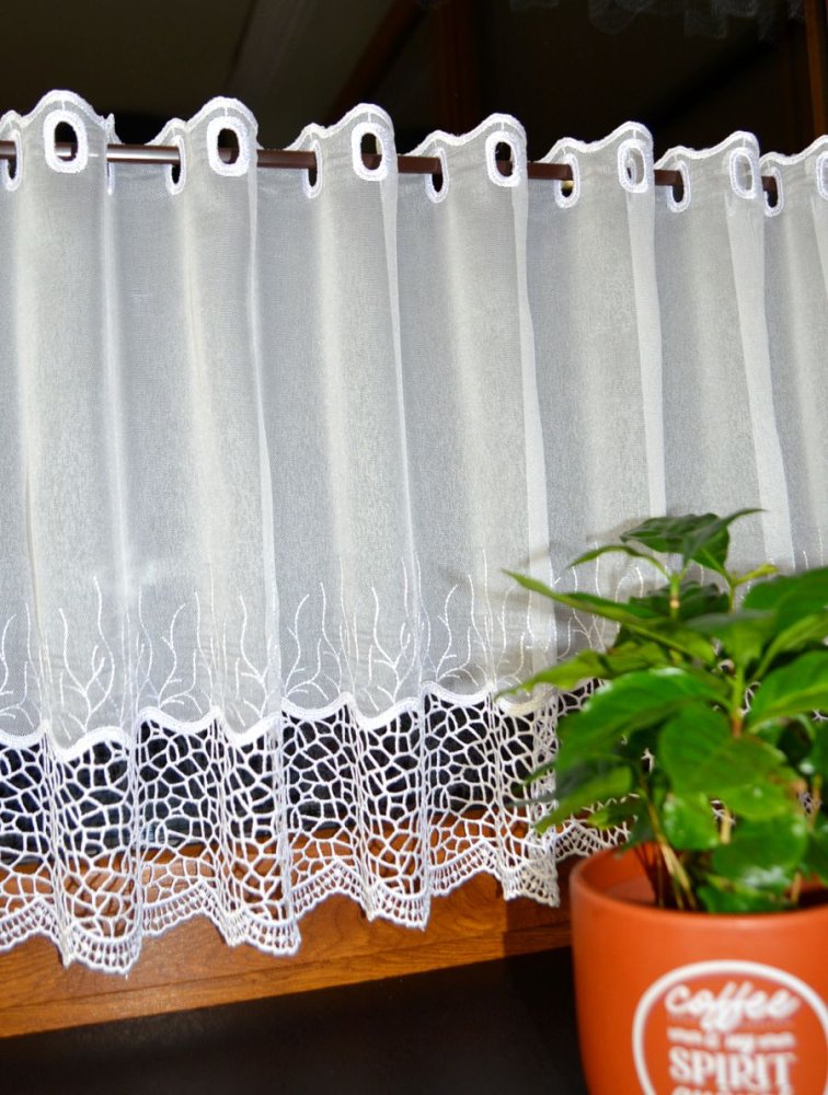 Zazdrostka VERA o wysokości 40 cm to propozycja dla osób poszukujących eleganckiej, lekkiej i praktycznej dekoracji okna kuchennego. Wykonana z wysokiej jakości białej markizety, została ozdobiona dekoracyjną gipiurą o splocie a’la plecionka, która nadaje jej wyjątkowo szlachetny charakter.