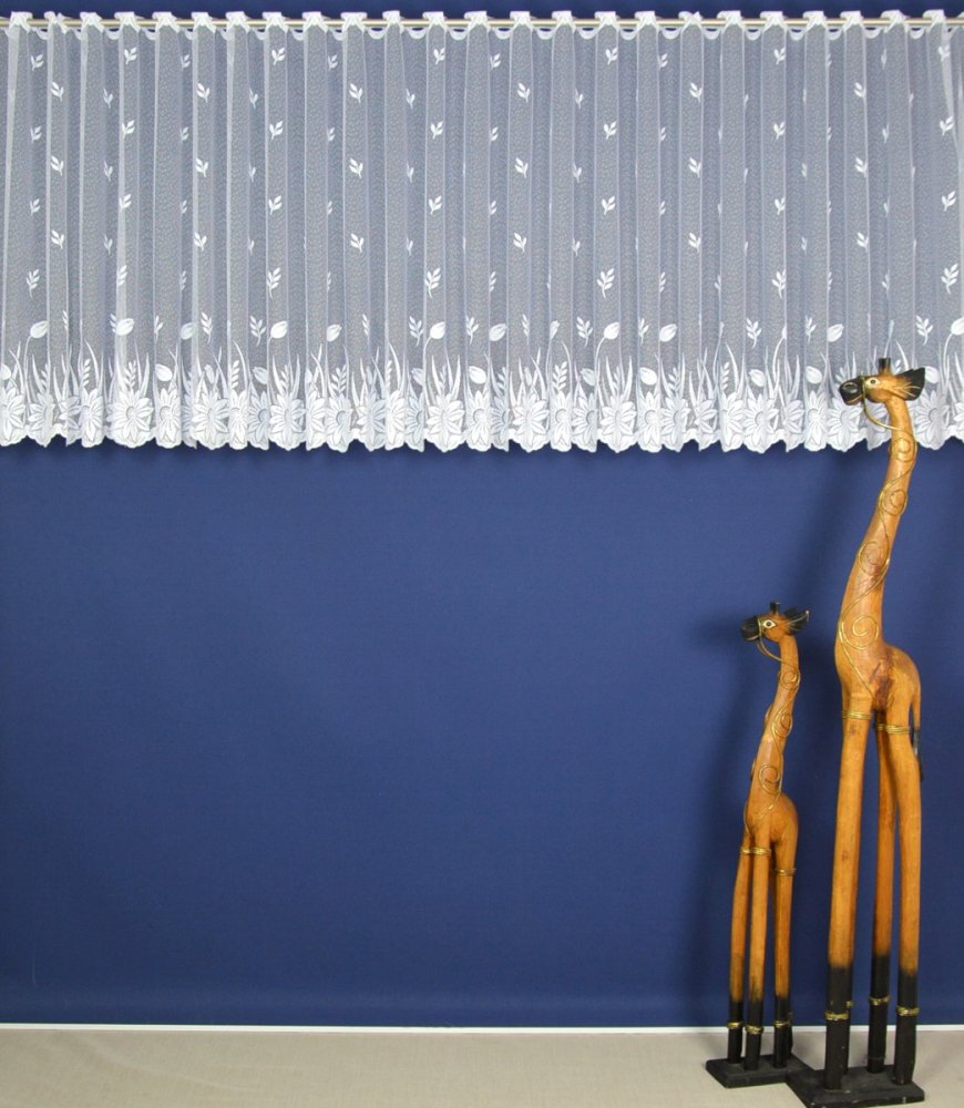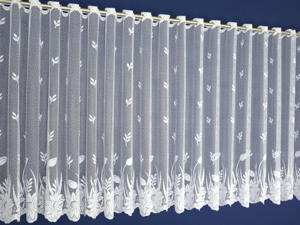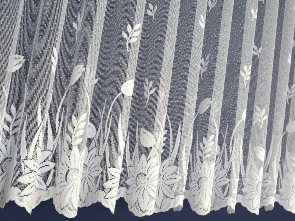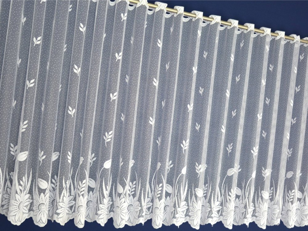 KUCHENNE FIRANECZKI Z KWIATOWYM WZOREM. OD DOŁU FIRANECZKĘ WZÓR TWORZY KWIETNĄ ŁĄCZKĘ GDZIE DOMINUJĄCYM MOTYWEM JEST KWIAT TULIPANA. ŚWIETNIE PREZENTUJE SIĘ ZARÓWNO OD WEWNĄTRZ JAK I NA ZEWNĄTRZ.