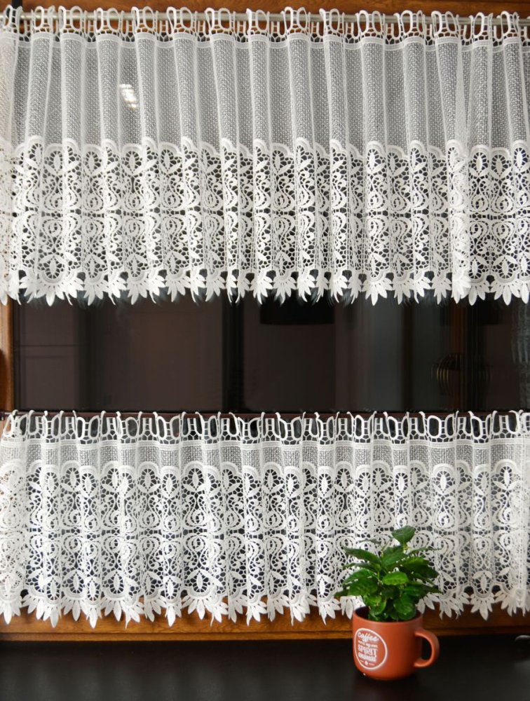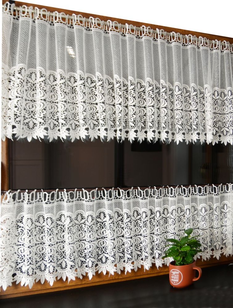 Zazdrostka LIRA o wysokości 60 cm to wyrafinowana dekoracja okna, która łączy ponadczasową elegancję gipiury z nowoczesną wygodą użytkowania. Wykonana z wysokiej jakości tureckiej gipiury, zachwyca bogatym, misternie dopracowanym wzorem oraz ciepłym, kremowym odcieniem, który subtelnie ociepla wnętrze i nadaje mu luksusowego charakteru.