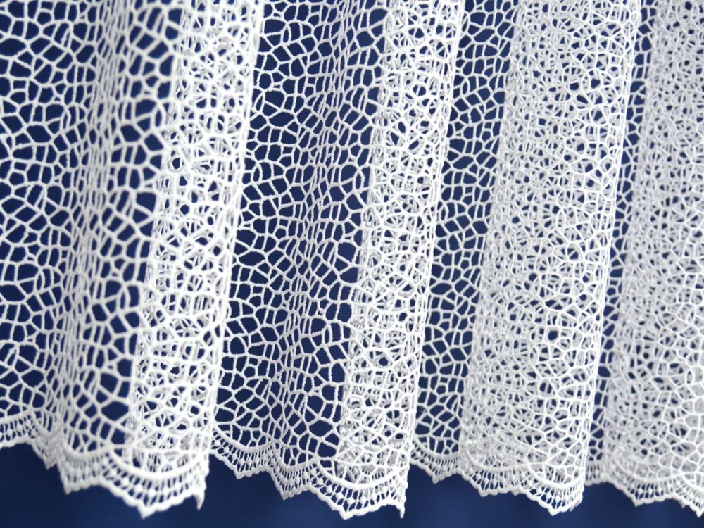 WYSOKIEJ JAKOŚCI GRUBA GIPIURA DAJE GWARANCJĘ DŁUGIEGO UŻYTKOWANIA FIRANECZKI. GÓRA WYKOŃCZONA LISTWĄ Z SZELECZKAMI - PRZECINAJĄC OCZKA NA LISTWIE TWORZĄ NAM SIĘ SZELKI O DOWOLNEJ SZEROKOŚCI - ICH SZEROKOŚĆ MOŻNA DOPASOWAĆ WG WŁASNEGO UZNANIA. TYM SPOSOBEM FIRANĘ MOŻNA ZAMOCOWAĆ BEZPOŚREDNIO NA RURCE KARNISZA.