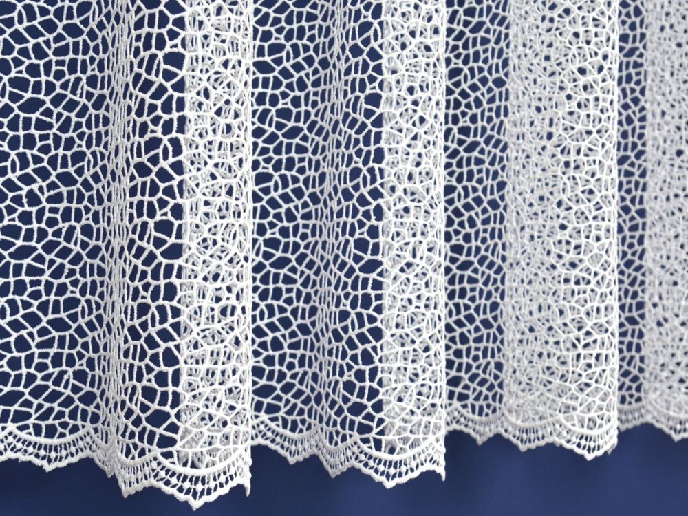 DO FIRANY MOŻNA TEŻ WSZYĆ TAŚMĘ MARSZCZĄCĄ I ZAMOCOWAĆ JĄ NA ŻABKACH LUB AGRAFKACH. DÓŁ WYKOŃCZONA OZDOBNYMI ZĄBKAMI. AŻUROWY WZÓR PIĘKNIE PREZENTUJE SIĘ W OKNIE.