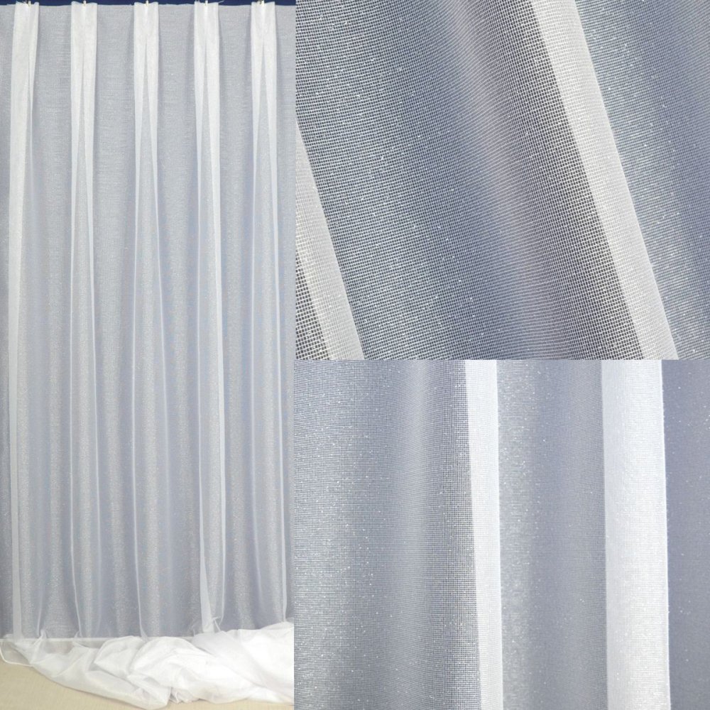 Poznaj firanę BIRNE — połączenie delikatności, struktury i subtelnego blasku. Wysokiej jakości siatka buklowana z wplecioną srebrną nitką nadaje jej wyjątkowego charakteru i elegancji, idealnej do nowoczesnych, ale i klasycznych wnętrz.