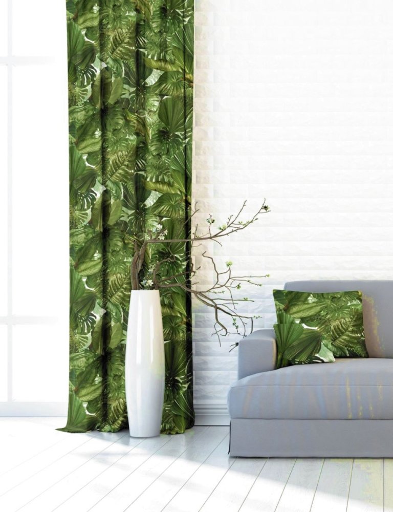 Zasłony z liśćmi monstera świetnie sprawdzają się nie tylko w salonie, ale również w sypialni, jadalni, domowym biurze czy kuchni. Ten wzór działa jak naturalny filtr światła – przepuszcza je na tyle, by pomieszczenie pozostało jasne, a jednocześnie skutecznie osłania prywatność. Struktura żakardowa sprawia, że tkanina dobrze się układa i wygląda estetycznie nawet przy intensywnym użytkowaniu.