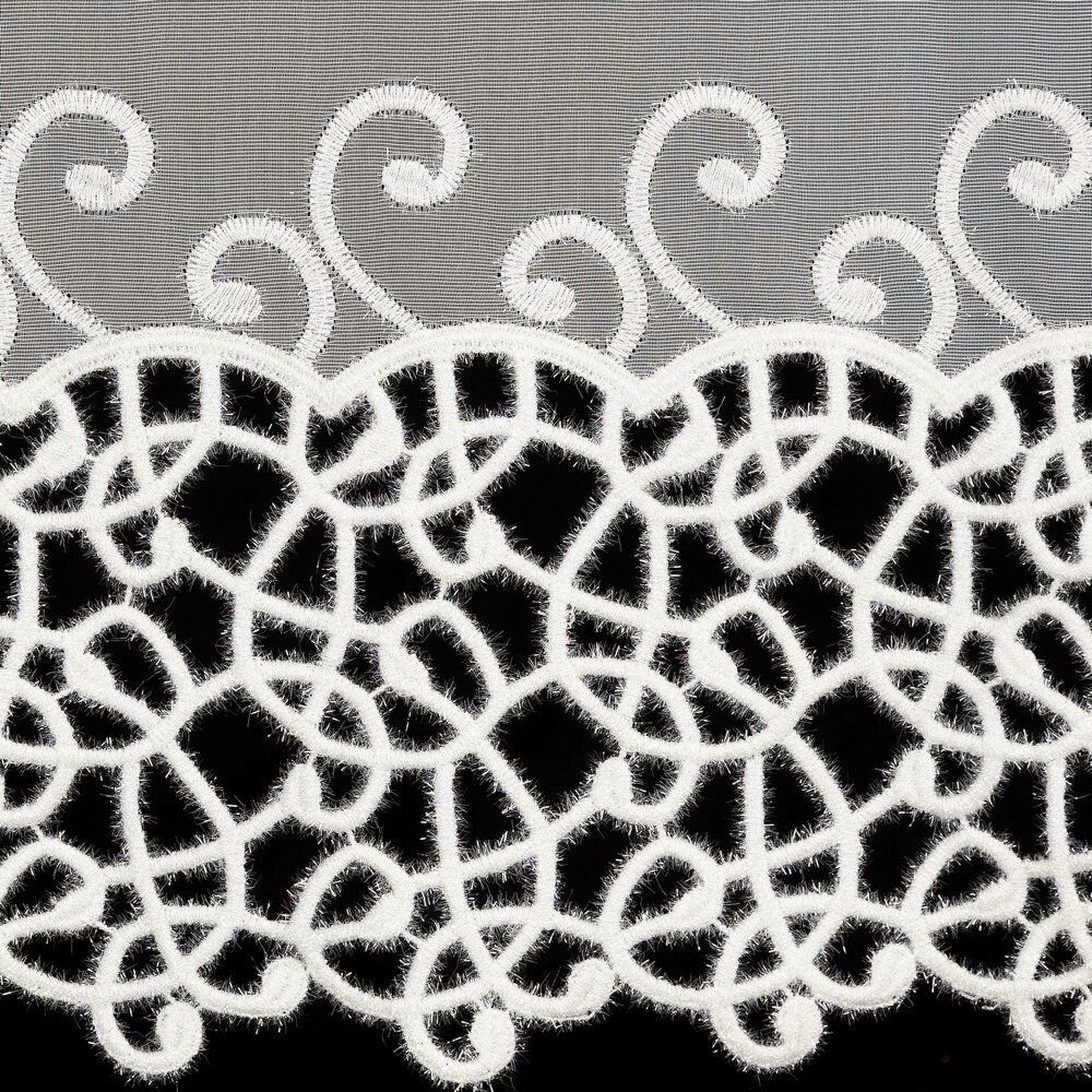 Odkryj firankę SCILLA – elegancką, kremową dekorację okna z kolekcji PREMIUM (wzornik EuroFirany), macie ją u nas w cenie: 62 zł zamiast 110 zł(cena na wzorniku Premium EuroFirany). To wyjątkowy model wykonany z matowej markizety, wykończony piękną gipiurą z dodatkiem lśniącej, moherowej nici, która pięknie odbija światło i przyciąga wzrok.