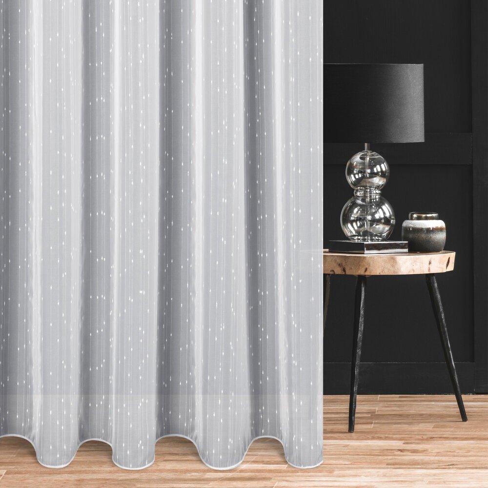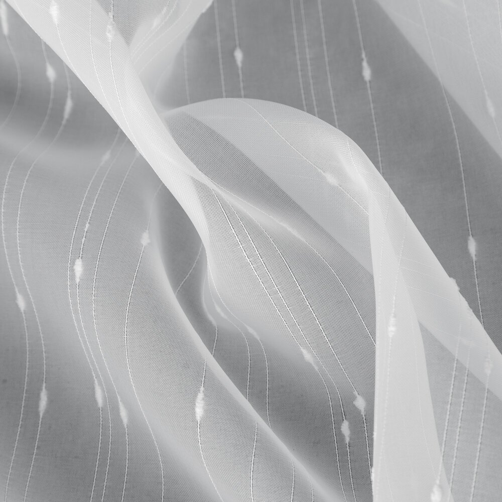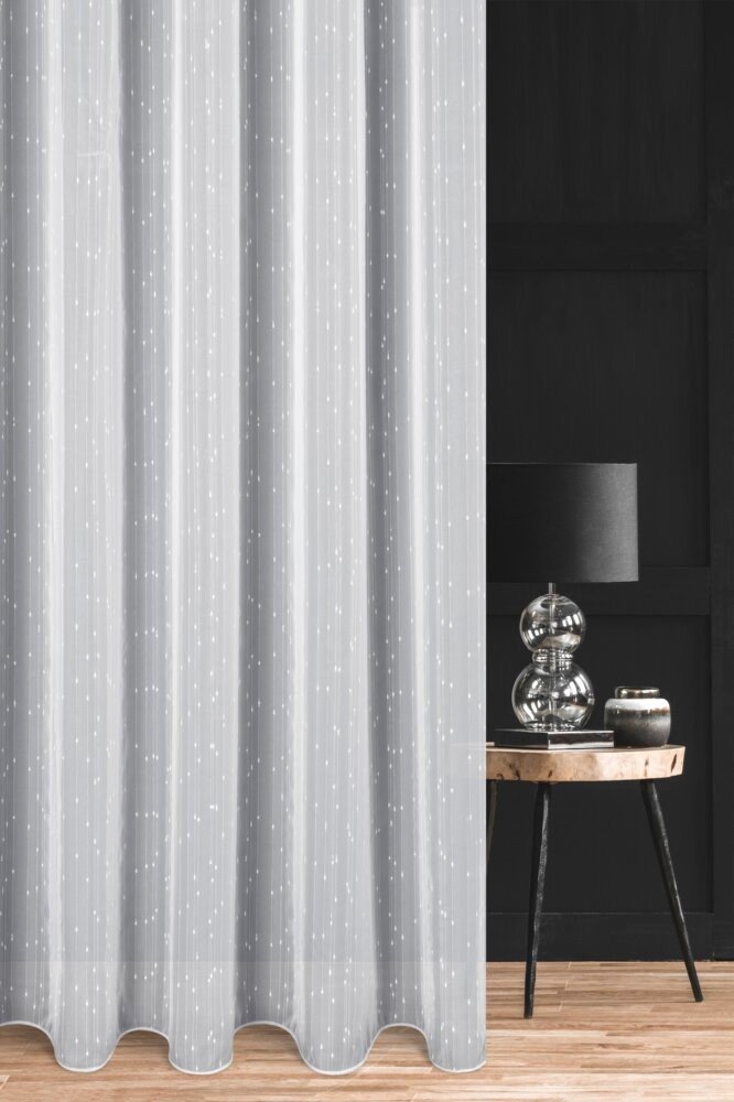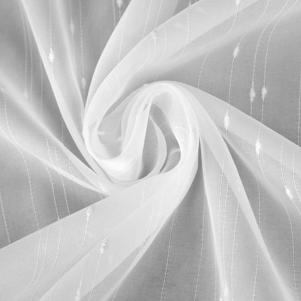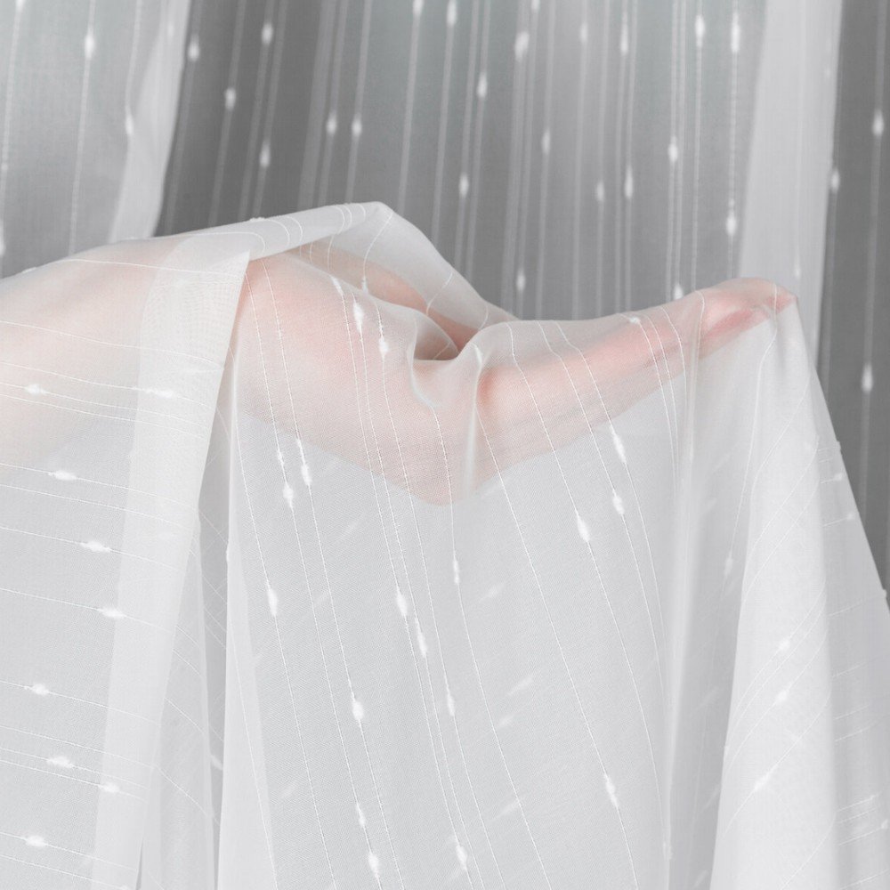 Elegancka firana z woalu „Orina” w kolorze białym, o wysokości 2,95 m, to subtelna dekoracja okienna dla miłośników lekkich, klasycznych wnętrz z delikatnym zdobieniem. Materiał przepuszcza naturalne światło, tworząc jasną i przyjemną atmosferę w salonie, sypialni czy jadalni, a haftowane pionowe kreski nadają tkaninie subtelnej tekstury i elegancji.