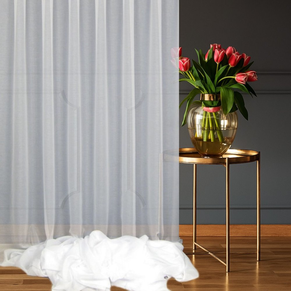 To firana, która pięknie prezentuje się zarówno w nowoczesnych aranżacjach, jak i klasycznych przestrzeniach, wnosząc do nich świeżość i elegancję. Jej uniwersalny wygląd sprawia, że doskonale komponuje się z zasłonami jednokolorowymi, a także z elementami metalicznymi czy szkłem.