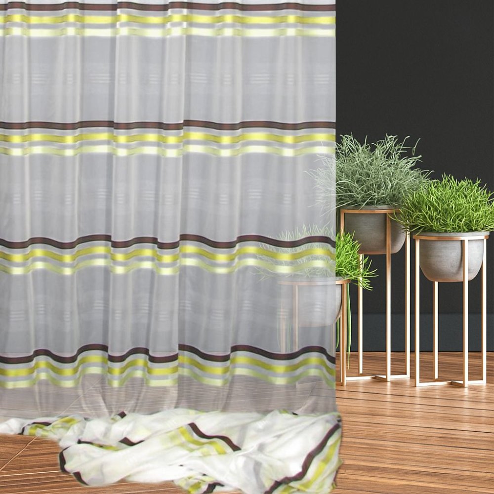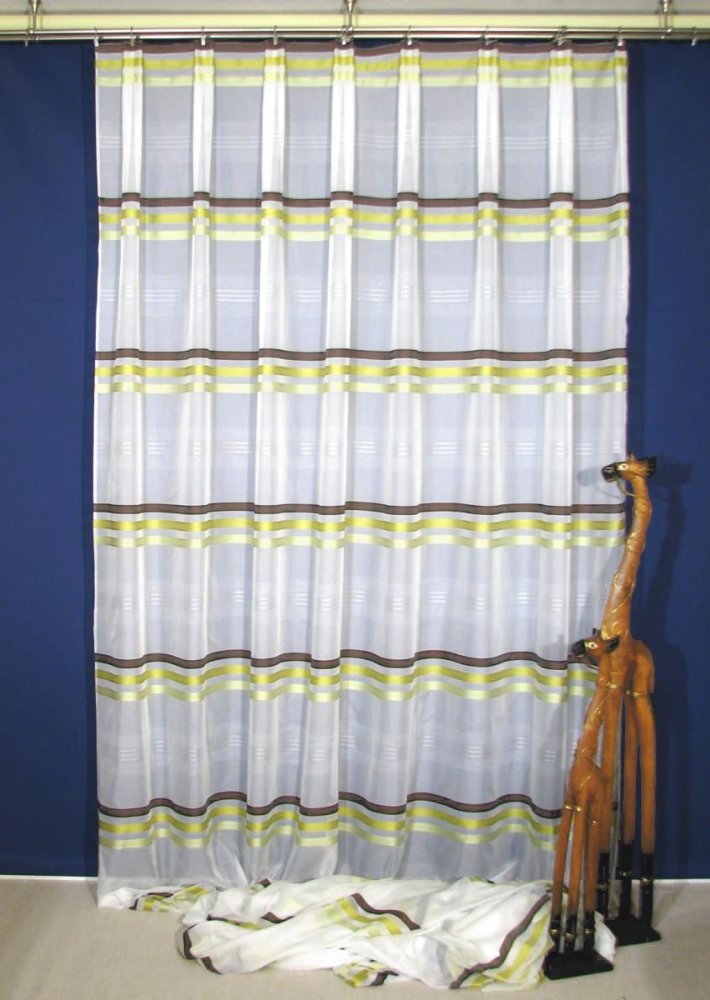 KOLORYSTYKA: | Śmietankowy woal w połączeniu z zielono - brązowymi pasami | |