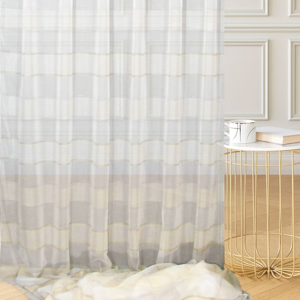Firana MAGIA PASÓW 20 to wyjątkowe połączenie klasy i świeżości natury. Delikatny woal w kremowo–zielonych odcieniach zachwyca subtelnym przejściem kolorów i eleganckim, tkanym wzorem w pasy, który dodaje wnętrzu harmonii i stylu. To propozycja dla osób ceniących nowoczesny design w ciepłym, przytulnym wydaniu.