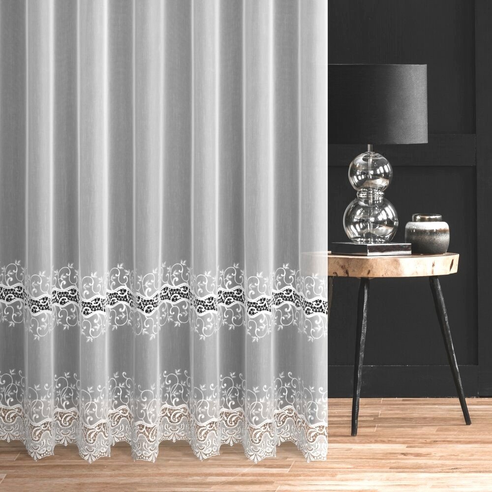 Elegancka firana z gipiurą - Firana do salonu - 2 szlaki gipiury - "VERBA" BIEL - 180