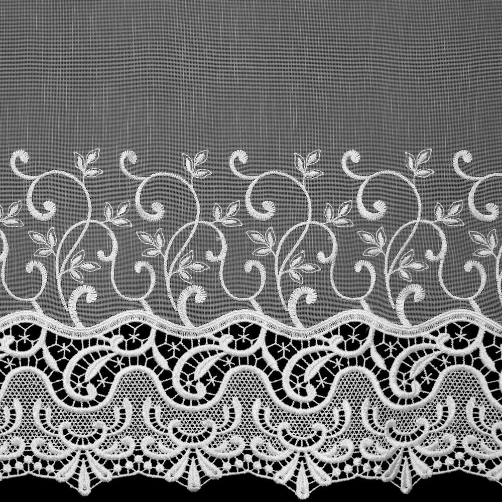 Strona główna / POMIESZCZENIA / SALON / Krótkie firany do salonu / Elegancka firana z gipiurą - Firana do salonu - 2 szlaki gipiury - "VERBA" BIEL - 180