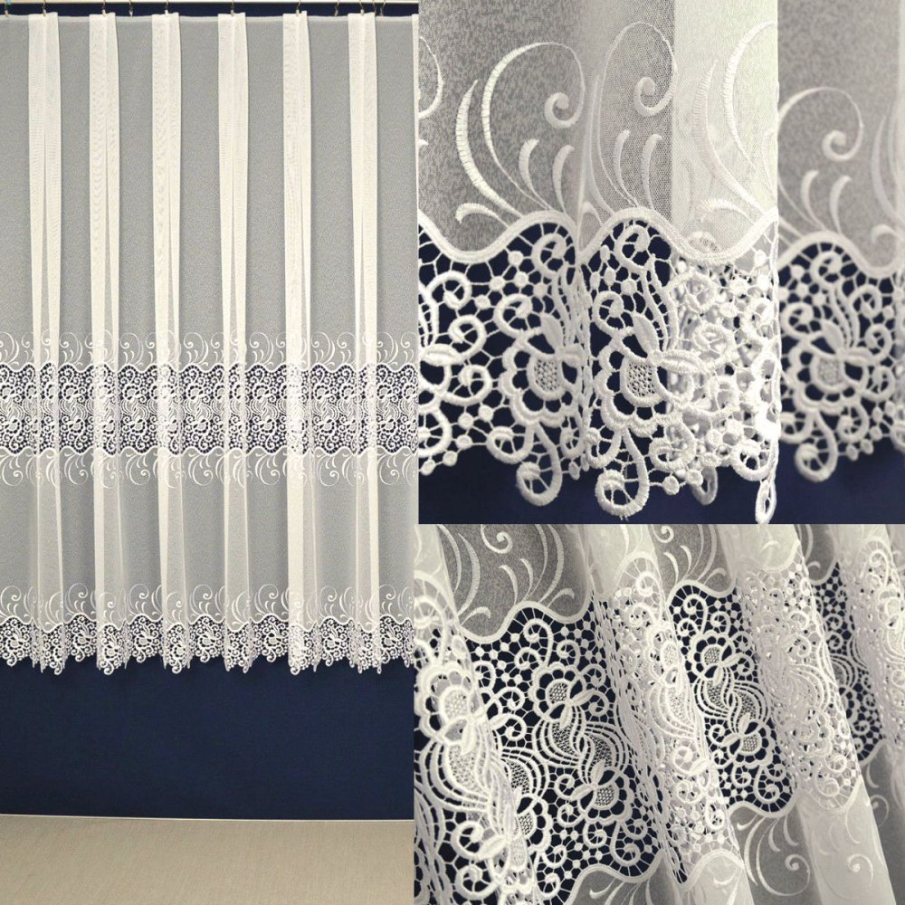 Krótka firana z gipiurą Margarita krem80m Margarita kremfirana z gipiurą wys. 1Elegancka firana z gipiurą Margarita kremKremowa firana z gipiurą Margarita
