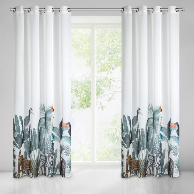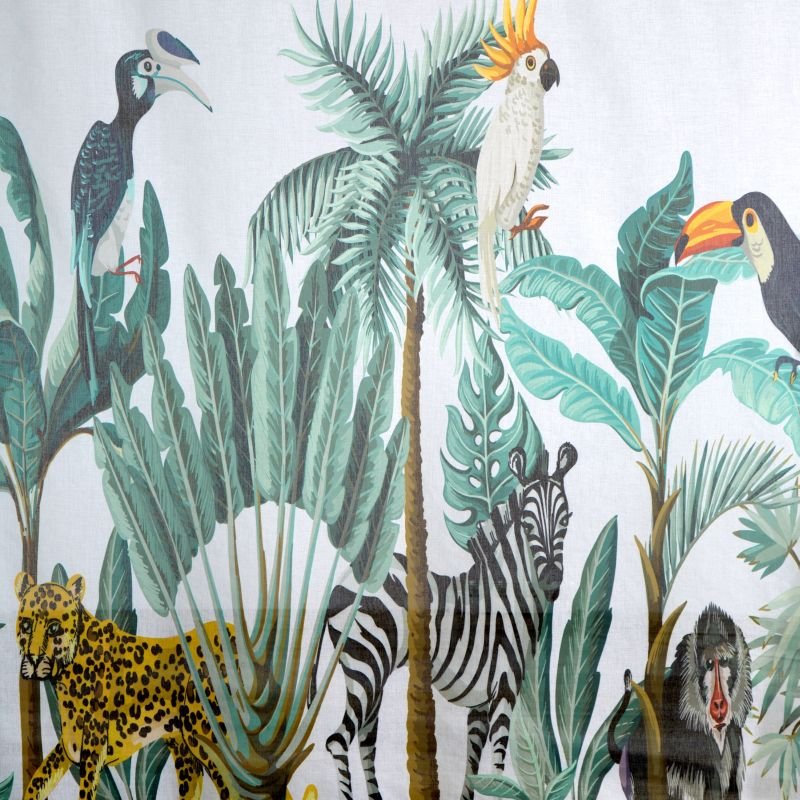 ORYGINALNE, ZWIEWNE FIRANY / ZASŁONY Z ETAMINY DRUKOWANEJ PANELOWO. MOTYW DŻUNGLI OD JAKIEGOŚ CZASU WPISAŁ SIĘ W TRENDY WNĘTRZARSKIE. TKANINY Z TAKIM MOTYWEM ZDOBIĄ JUŻ NIE JEDNO WNĘTRZE - ALE SZUKAMY CIĄGLE CZEGOŚ ORYGINALNEGO W TYM STYLU. FIRANA / ZASŁONA LOTTIE TO ŚWIETNA POZYCJA - NIE SZTAMPOWA, NIESPOTYKANA I ORYGINALNA. PANELOWY DRUK O CIEKAWYM CHARAKTERZE - ŁĄCZĄCY ZE SOBĄ MOTYWE ROŚLINNY I ZWIERZĘCY BĘDZIE Z PEWNOŚCIĄ CIEKAWYM AKCENTEM DEKORACYJNYM W KAŻDYM WNĘTRZU.