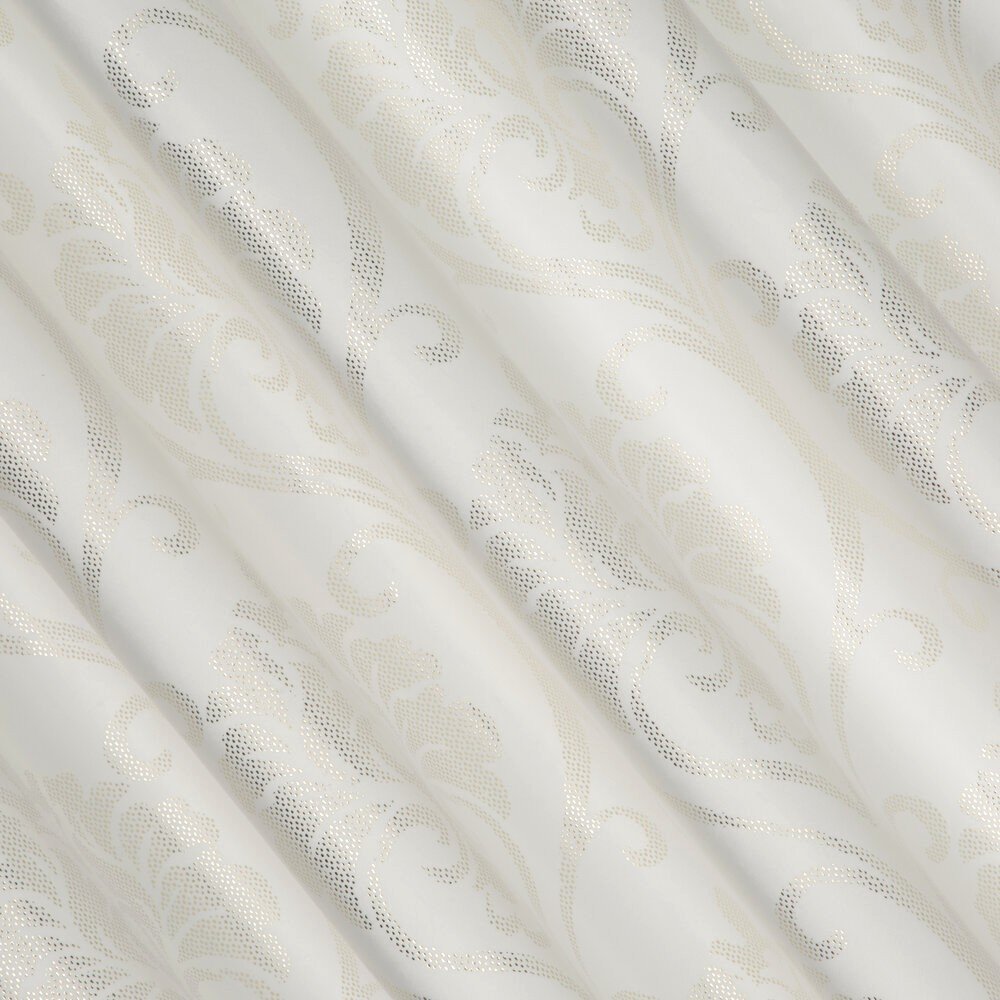 Wytworne zasłony welurowe „DAMASK” w odcieniu aksamitnej śmietanki z subtelnym złotym ornamentem to propozycja dla osób ceniących luksus, lekkość i ponadczasową elegancję.