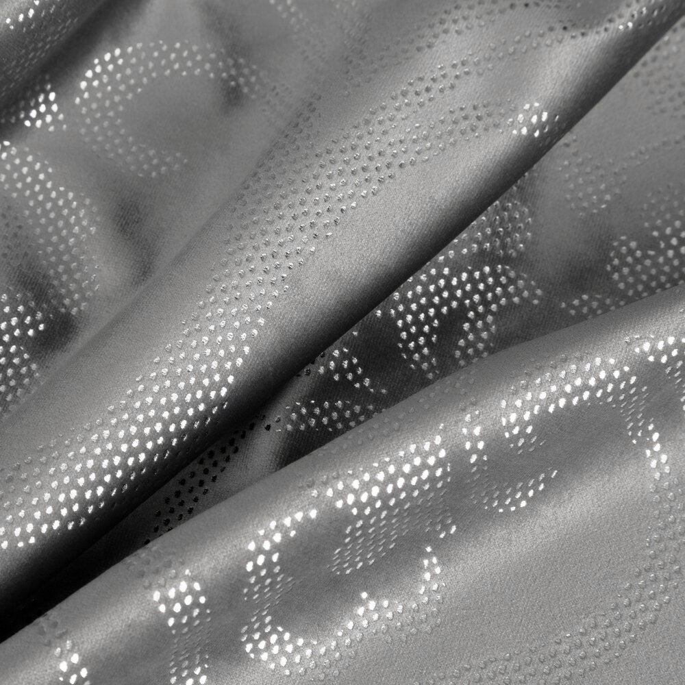 Tkanina typu welur / welwet w odcieniu szlachetnej stali jest miękka, aksamitna i subtelnie połyskująca.